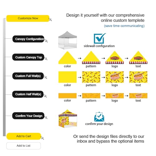 - BENEFITS TO CHOOSE ABLEM8CANOPY - The very original and most experienced supplier who brought online customization with absolute transparency and accommodation. Get your custom canopy and accessories all at 1 place, no hidden charge for mockup, revisions, rush order, shipping, or for material upgrade, roller bag/stakes