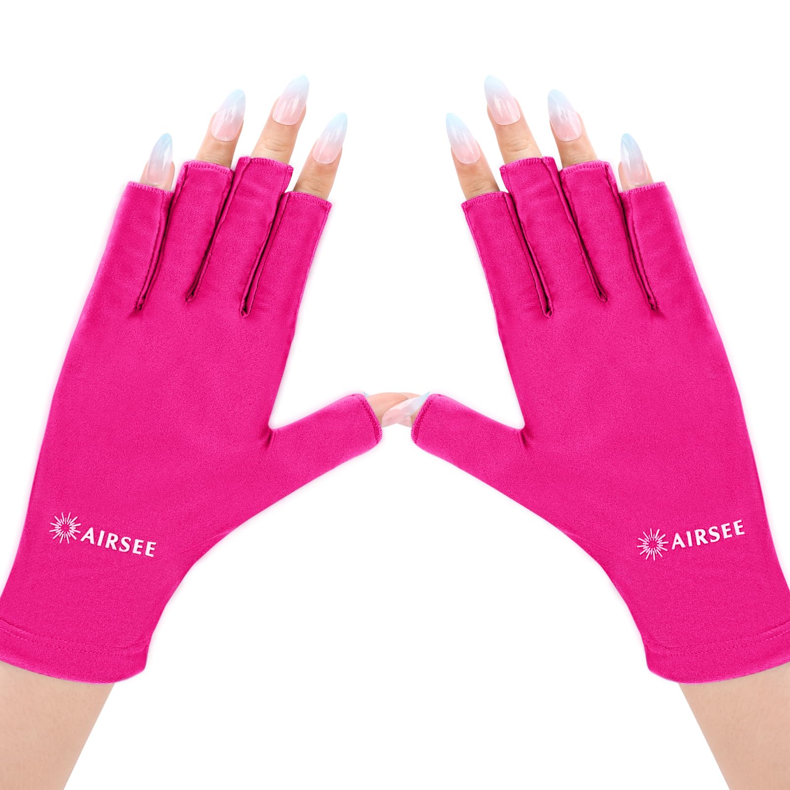 AIRSEE UV Gloves for Nail Lamp,Professional UPF50+ UV Protection Glove for Manicures Nail Art,Fingerless That Shield Skin from The Sun and Nail Lamp (Rose Red)