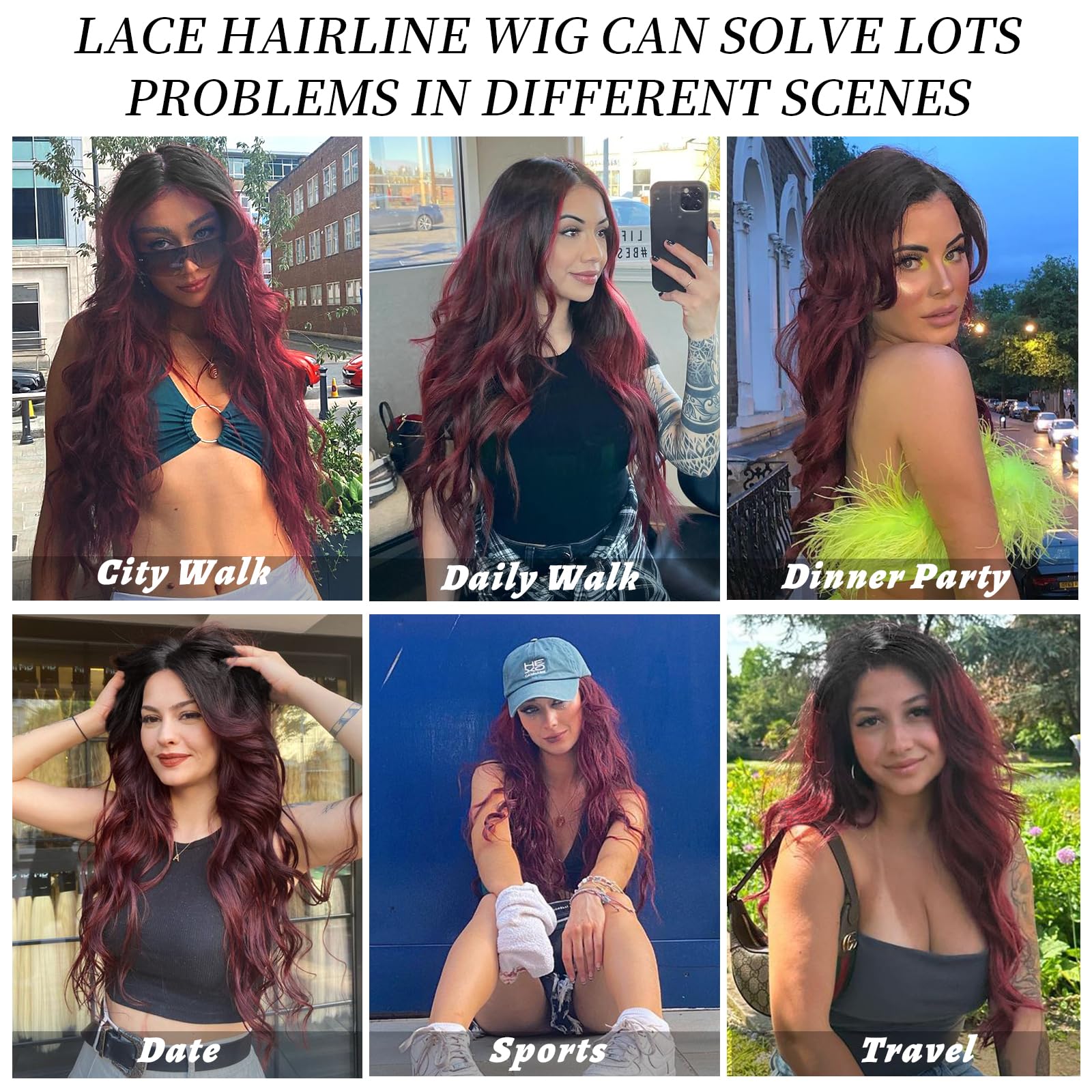 AISI HAIR Wig for Women, Long Red Wavy Lace Hairline Middle Part Synthetic Heat Resistant Wig for Daily Party-26 Inch