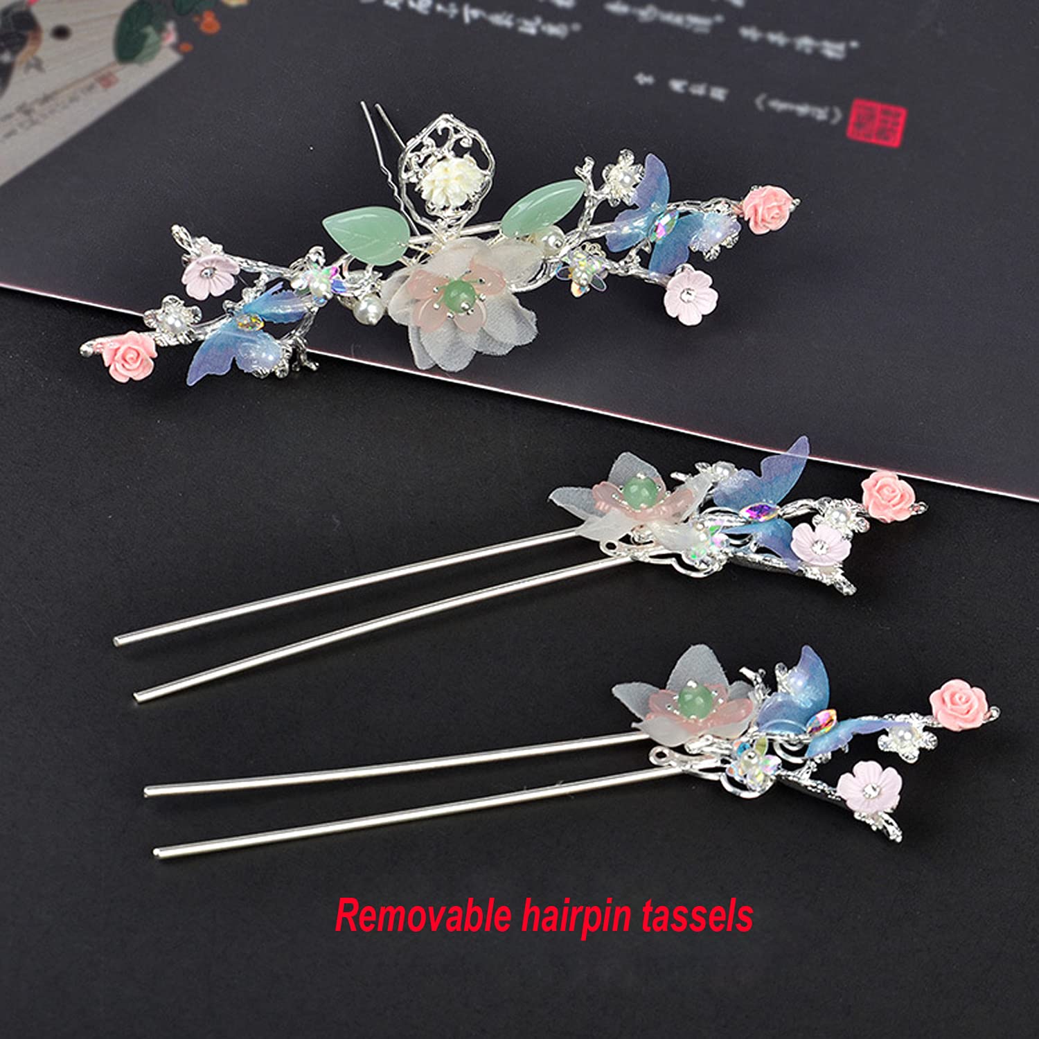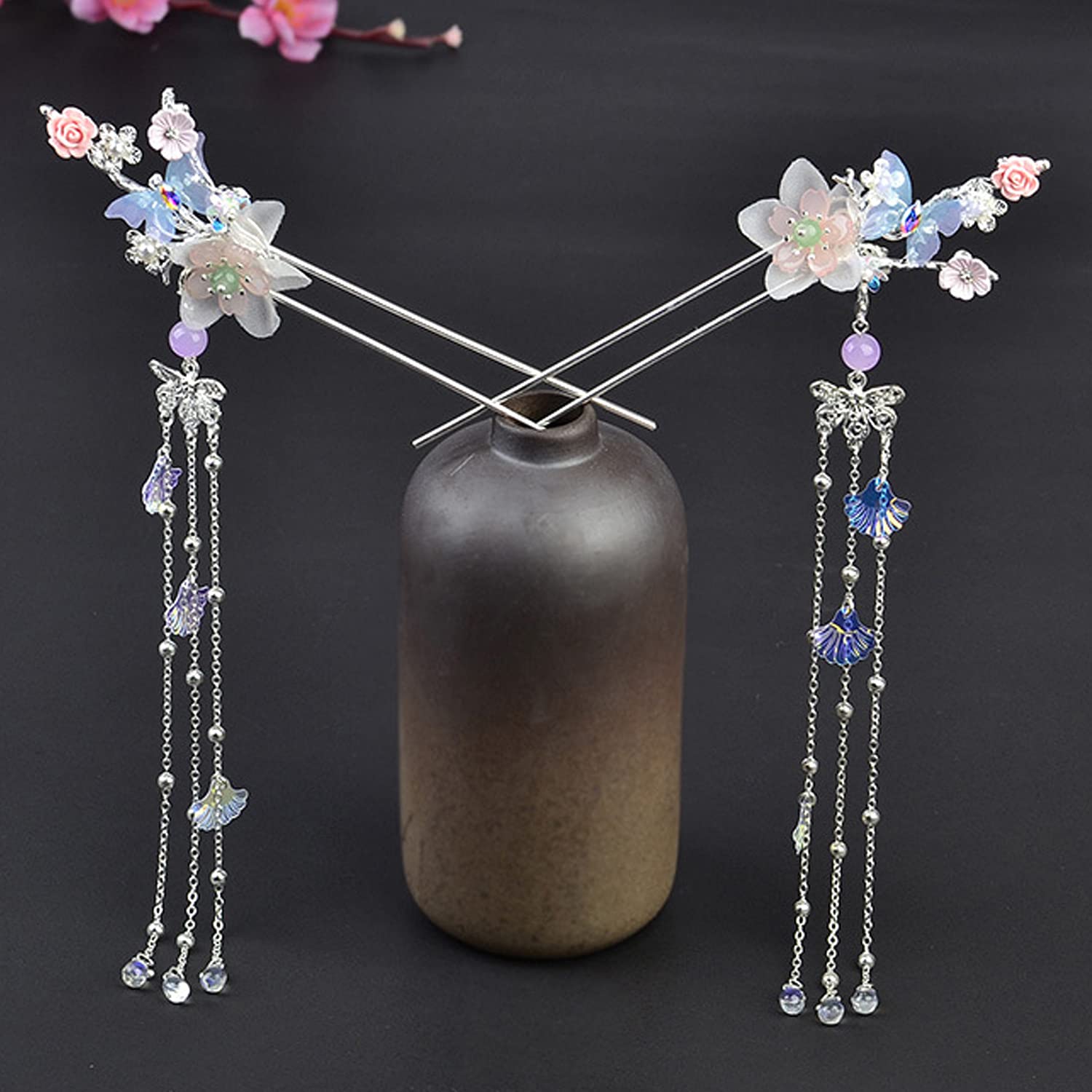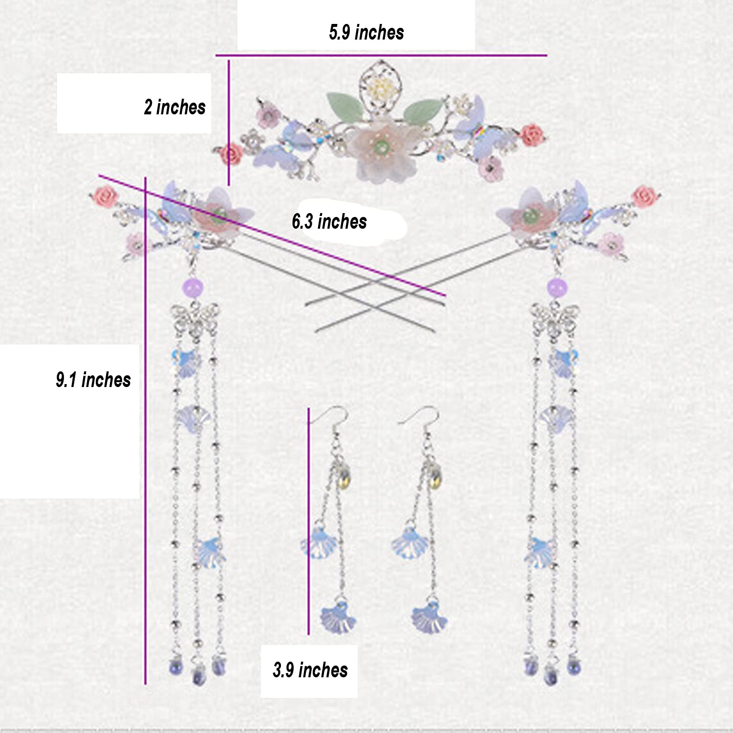 Details: Product Name: Hair Sticks Set. Material: Alloy, gauze. It's inspired by ancient Chinese women's hair accessory, and an absolutely elegant looking accessory for long hair. Vintage Chinese style design hair pins fit for weddings, proms, parties, birthdays, anniversaries and any other special occasions. Package:1 x Hair Sticks Set(1 Pairs HairSticks+1Pc hair comb+1 Pairs earrings).