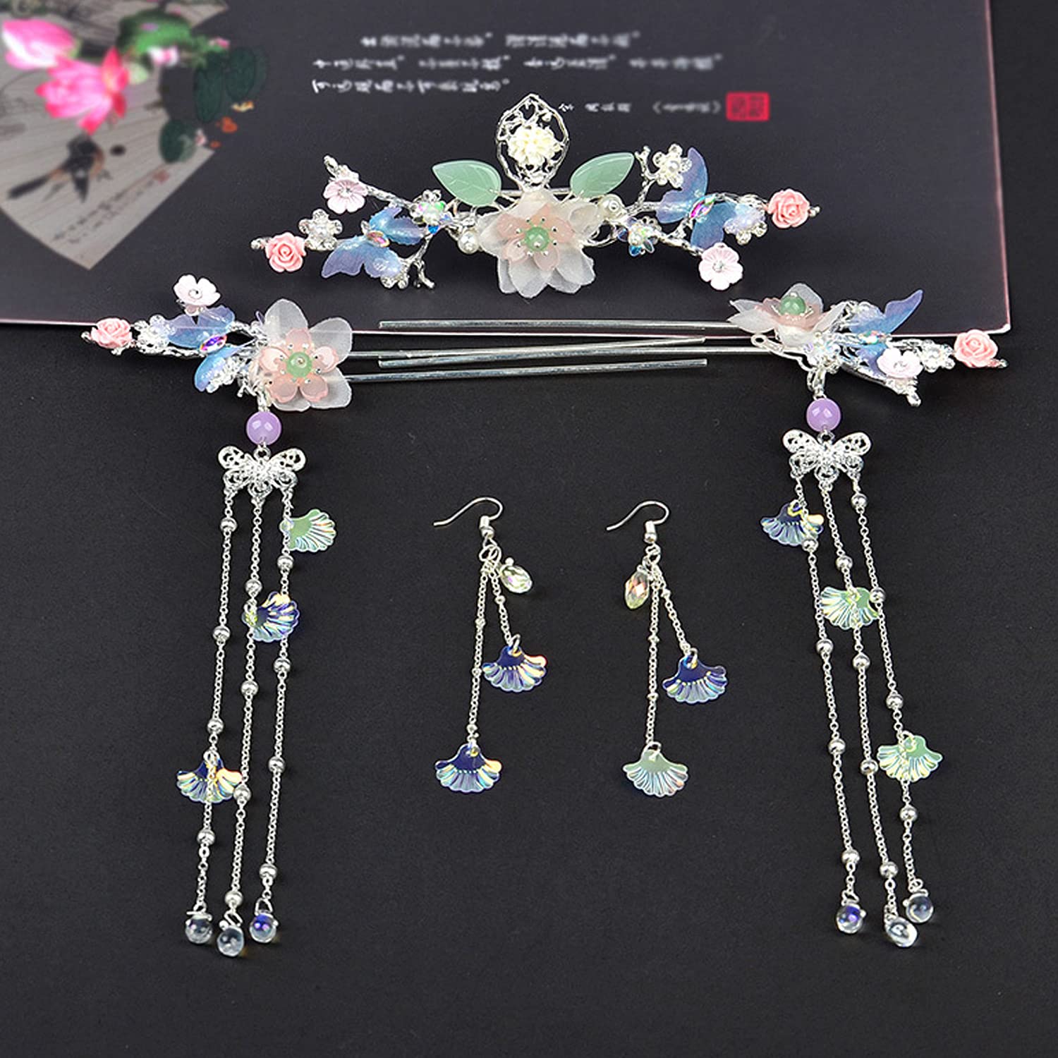 Alloy Hair Sticks Pins,female Long Tassel Hanfu Chinese Hair Comb/Earrings Set female Traditional Classical (Style A)