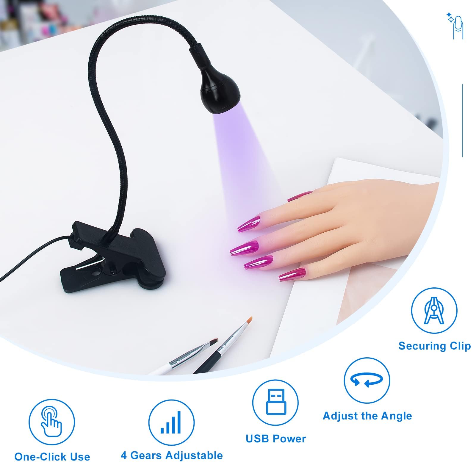 AORAEM Nail Lamp with UV Protection Gloves,3W LED Nail Manicure Dryer 35NM Curing Light with Black Gooseneck and Clamp for Gel Nails