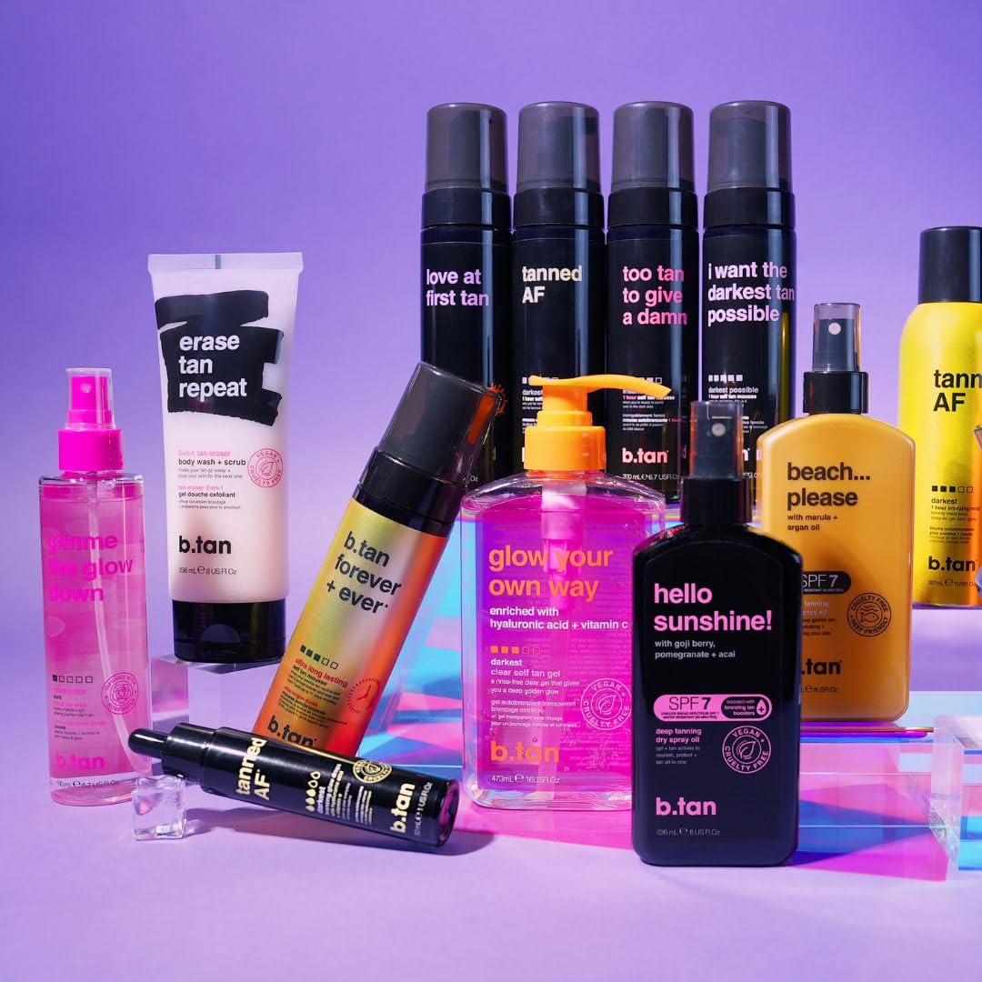 b.tan Violet Self Tan Foam & Face Mist Kit | Lovers Bundle - Dark Sunless Tanning Mousse, Bronzing Glow Gradual Facial + Body Spray, Mitt Applicator, 1 Hour Express, No Fake Tanner Smell, 6.7 Fl Oz