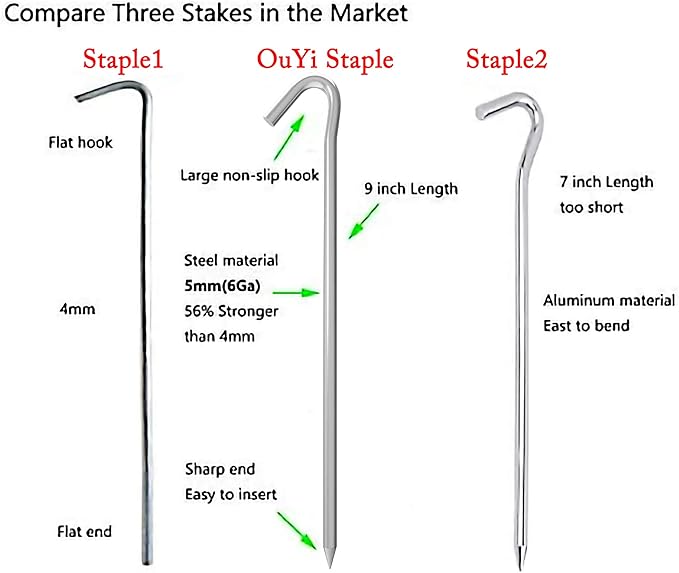 - MULTIPLE USES - Ideal for anchoring yard outdoor camping, tents, canopy, fencing, garden/landscap edging,shelters, tarps, little dogs, garden netting, gazebo anchors or secure holiday decorations,Christmas Lights,inflatables, picnic blanket,camping tent, garden net, canopies, netting, garden fabrics, twine cloches and other garden structures and more to hard ground or on the beach, keeping them in the shape and in place against wind.