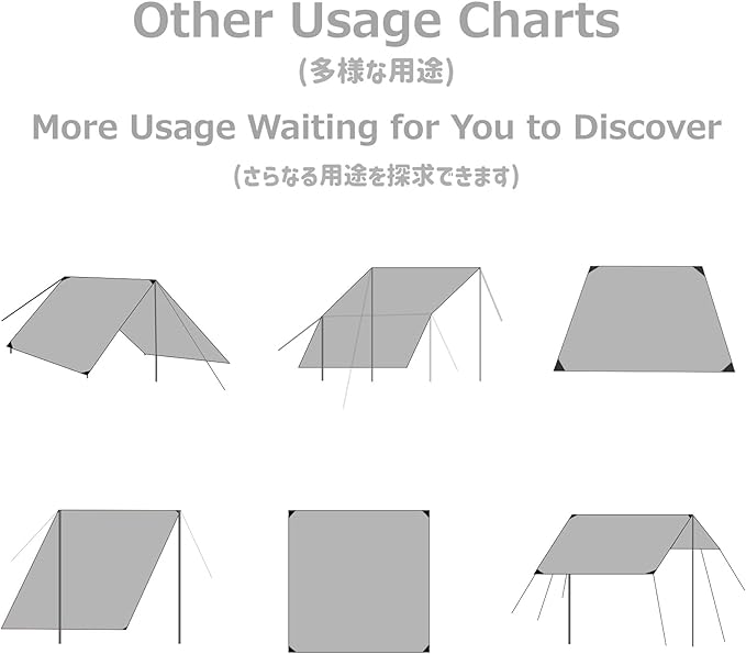 - Included Components : guyline x4, tent stake x2, tarpaulin x1, storage bag x1