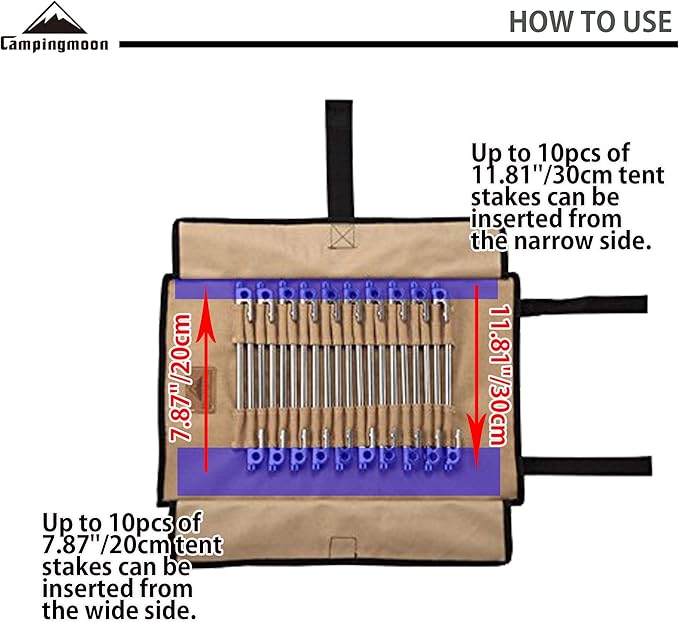 - GET YOUR TENT STAKES ORGANIZED:You can put 20pcs of tent stakes in this storage bag. 10pcs of them should have less than 7.87’’/20cm length and 10pcs of them should have less than 11.81’’/30cm length.