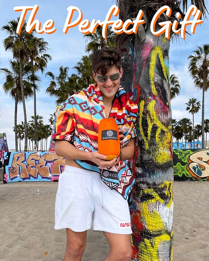 ECCOSOPHY Sandproof Beach Blanket - Oversized Sand Free Beach Mat 9'x10' - Lightweight Outdoor Picnic Blanket Anchored with 4 Corner Sand Pockets & Plastic Stakes - Heat Proof, Quick Drying & Compact