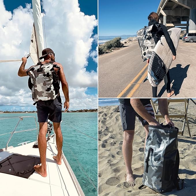 COR Surf Waterproof Backpack with Laptop Sleeve | Heavy Duty Hiking, Kayak Dry Bag Backpack | Roll-Top Closure (40L Camo)