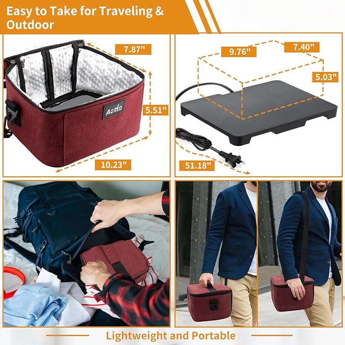 - ✅ NO MONITORING REQUIRED: Perfectly heats and holds temperature for hours without burning. Aotto portable microwave lunch box food warmer heats food up to 168 degrees Just put your meal in the warming tote & plug it in, go about your day, back to enjoy your food whether you're ready in an hour or hours later.