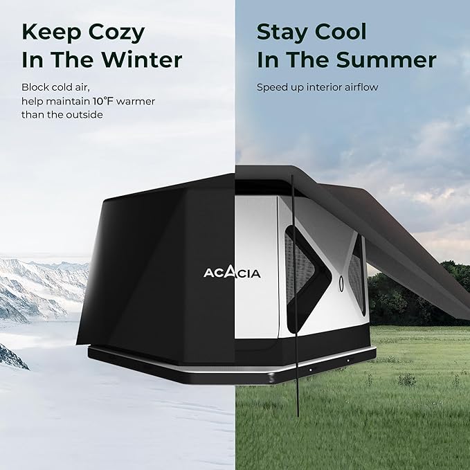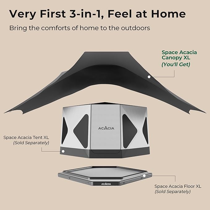 - 3-IN-1 NEW CAMPING SYSTEM: The Space Acacia consists of a spacious, modern glamping tent, the first-of-its-kind proprietary air floor and the innovative, temperature-adjusting canopy. All 3 thoughtfully designed components work in harmony to enable you to live an indoor lifestyle, outdoors.