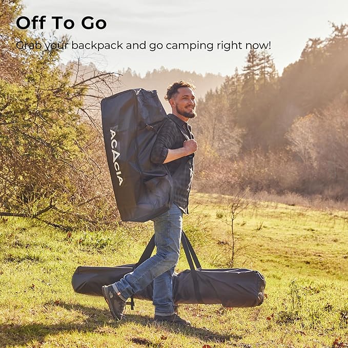 - 3-IN-1 NEW CAMPING SYSTEM: The Space Acacia consists of a spacious, modern glamping tent, the first-of-its-kind proprietary air floor and the innovative, temperature-adjusting canopy. All 3 thoughtfully designed components work in harmony to enable you to live an indoor lifestyle, outdoors.