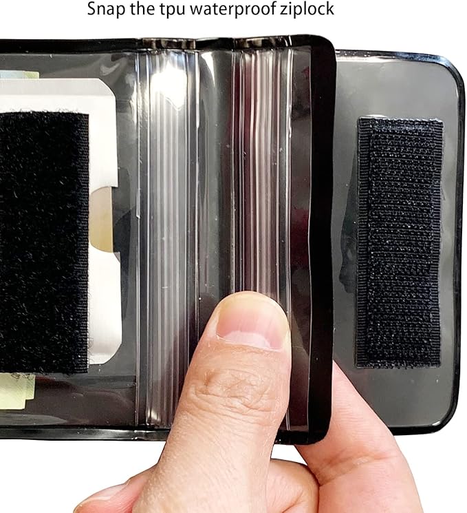 - 1. IPX8 Waterproof armband Key holder/Wallet waterproof up to 32 feet(10m),No worries of your valuables getting Wet, protect your GPS,car key Fob, Money, Vaccine Card, ID, credit card and valuables safe and dry from water, splash, or total immersion whether you are swimming, surfing, diving, kayaking, river rafting, snorkeling, tubing, paddle boarding, ,water slides, water slides, fishing, hunting, camping, running, biking, adventure travel or other watersports or outdoor activities.