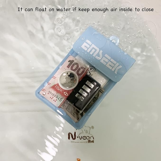 - 3.Floating Design. EMSEEK Floating Waterproof key bag can float in water if you keep enough air inside to close even full loaded. No Worry your valuables sink any more. Please test this ability first if you want it float before using in deep water.