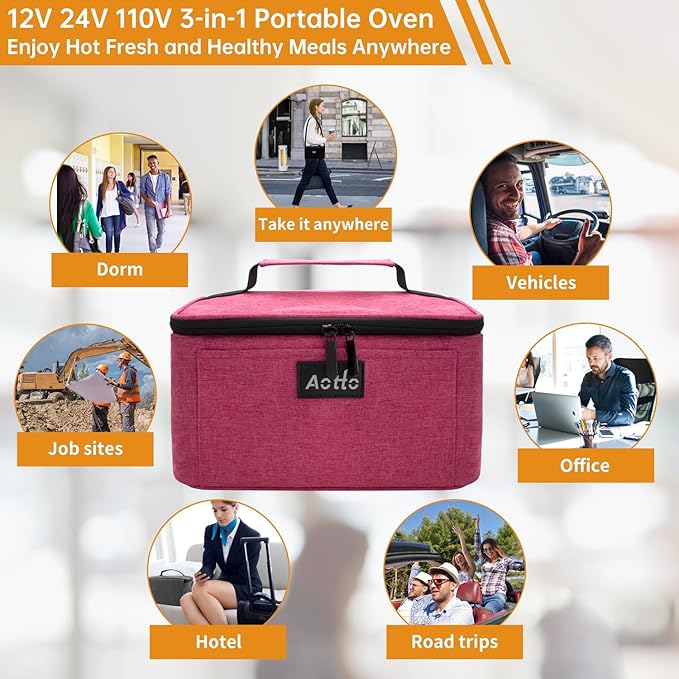 - ✅ HOT MEALS SO EASY: This 3-in-1 portable food warmer heats your food evenly without drying it out and preserves moisture & nutrition, giving you warm tasty food more conveniently. A mini portable oven with 12 volt & 24 volt, 110 volt connectors, ideal for reheating and cooking healthy dishes, boxed meals and leftovers while you work on the road, traveling, or in the office, field, at home, potlucks, or you are tired of cold and unhealthy food or waiting in line for the office microwave.
