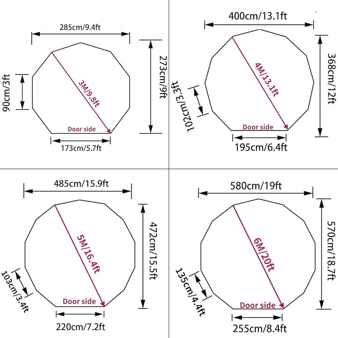 - KEEP BOTTOM DRY: The waterproof footprint works well under bell tents in rainy environment(Not fireproof). Simply lay it down before setting up your tent. Be sure to match up the door of your tent to the door side of the tarp.The longest side way should be aligned with the side of the bell tent door.