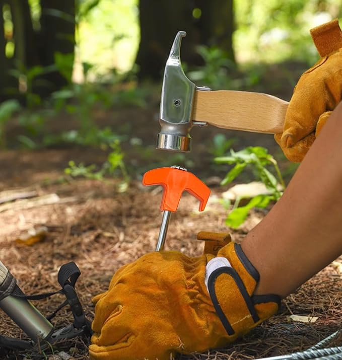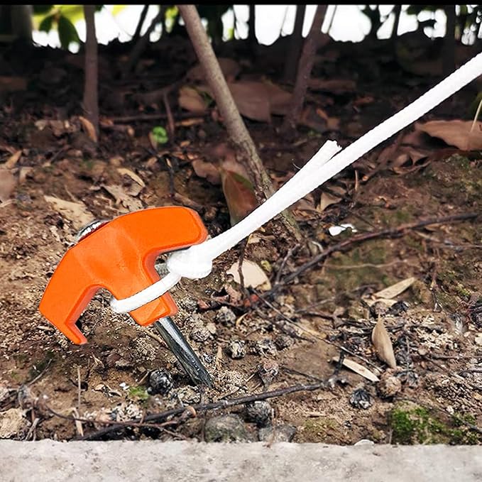 - T-shaped Top: The hook prevents the stake from going too deep and you can use the hook to pull the camping stake out with a tent hammer