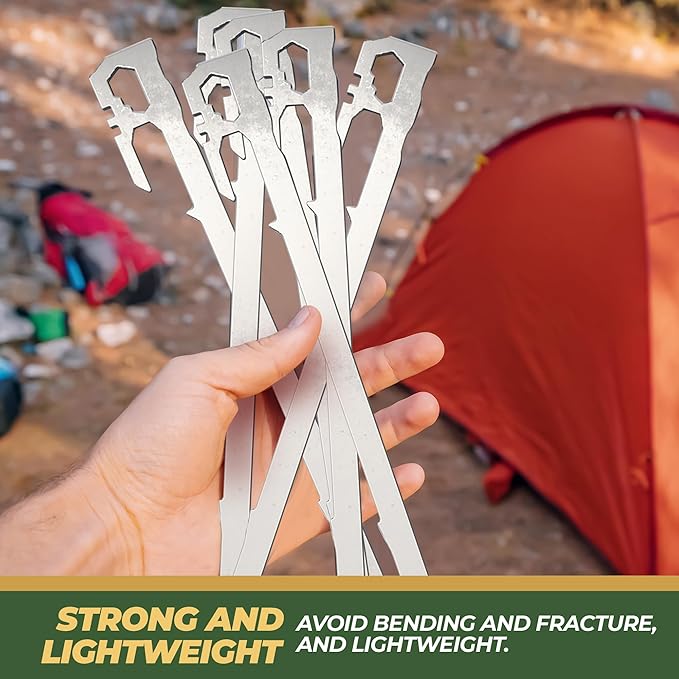 Camping Tent Stakes - Heavy Duty Tent Pegs Outdoor, Metal Tarp Spikes and Inflatable Tent Pole Pins 6 Pack