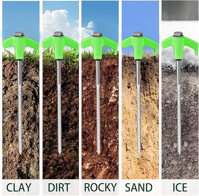 - EASY INSTALLATION :Our tent pegs are designed with smooth metal threads and come with a magnetic tent peg adapter, which can be quickly and easily fixed on the ground using a cordless drill or impact driver, and can be set up simply and easily in a wide range of terrains