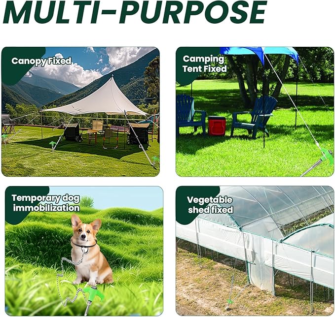 - Wide range of uses : Our tent pegs are widely used, not only in the sand and gravel, dirt, beach, snow and other places, but also can be fixed home garden plants, fixed canopy, temporary fixed dog, fixed holiday decorations, and we have a variety of colors, can be used with each other and decorations, and is not flashy, in the case of having a beautiful appearance, there is also a very strong grip, making it Completely capable of doing any job