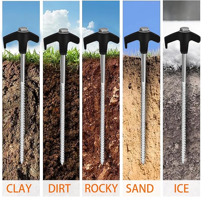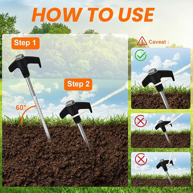 - EASY INSTALLATION :Our tent pegs are designed with smooth metal threads and come with a magnetic tent peg adapter, which can be quickly and easily fixed on the ground using a cordless drill or impact driver, and can be set up simply and easily in a wide range of terrains