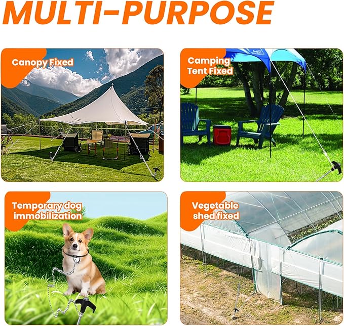 - Wide range of uses : Our tent pegs are widely used, not only in the sand and gravel, dirt, beach, snow and other places, but also can be fixed home garden plants, fixed canopy, temporary fixed dog, fixed holiday decorations, and we have a variety of colors, can be used with each other and decorations, and is not flashy, in the case of having a beautiful appearance, there is also a very strong grip, making it Completely capable of doing any job