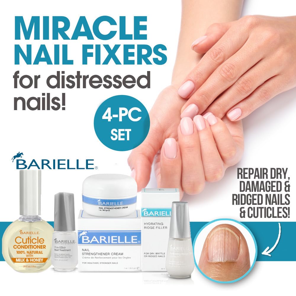 - Nail Treatment Kit for Intensive Nail Repair: This Deluxe Miracle Nail Fixers Collection will help you restore nails to beautiful condition. Includes our classic Barielle Nail Strengthener 1oz, our all new Cuticle Conditioner with Milk & Honey 1oz, our Barielle 7-in-1 Elixir Nail Treatment and our Barielle Hydrating Ridge Filler Base Coat.