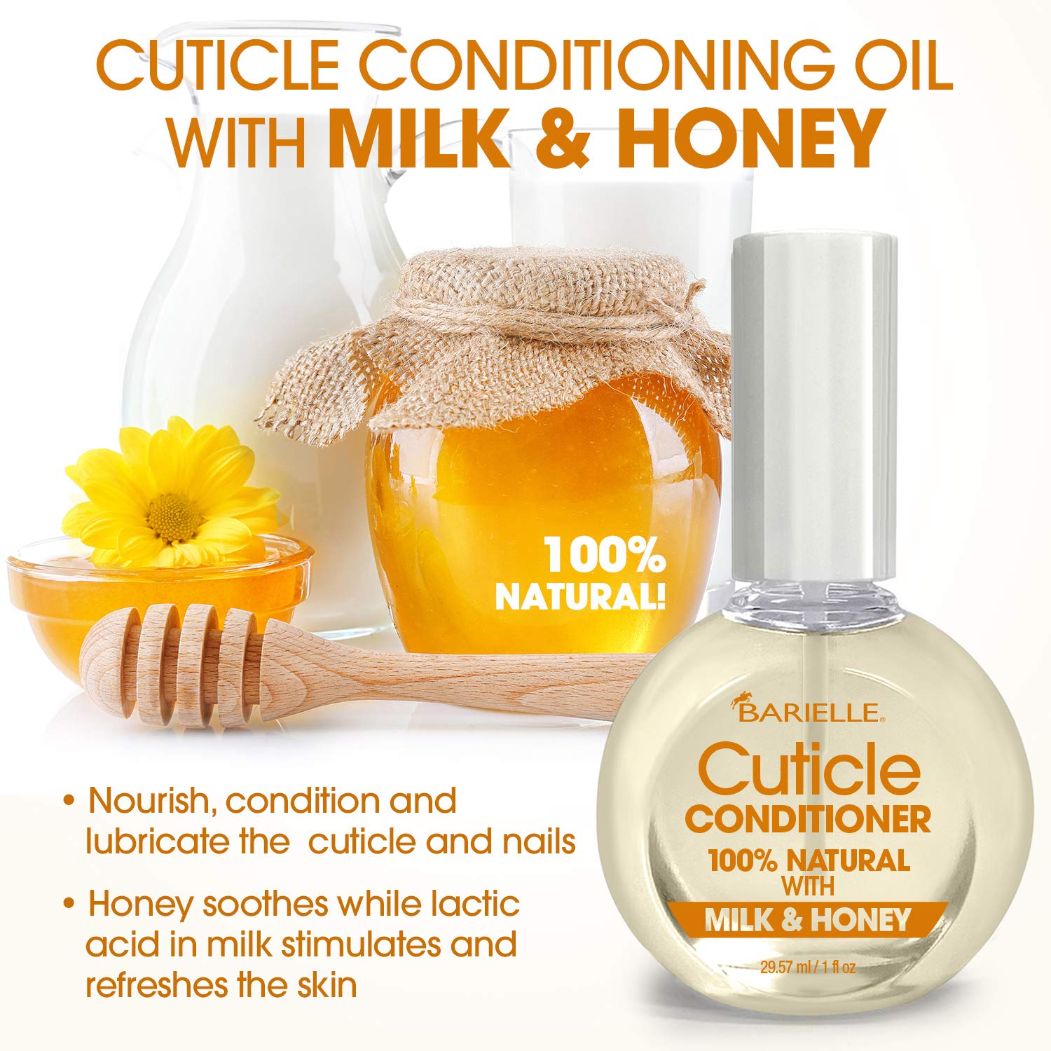- Barielle Cuticle Conditioner with Milk & Honey: made with 100% Natural ingredients is a light, deeply penetrating formula. It provides intense moisture to the cuticles that rehydrates and strengthens both the cuticles and nails.