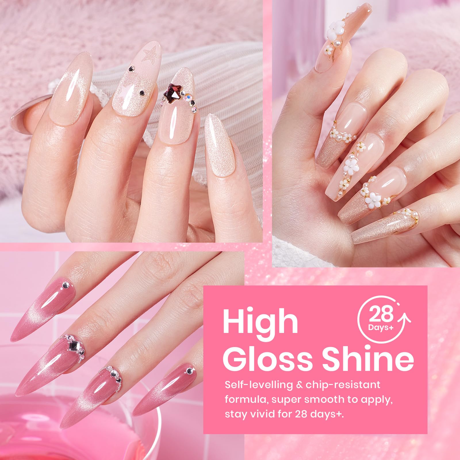 - 【28 Days Long Lasting】Beetles nude pink silver glitter cat eye gel polish lasts for 28+ days with high gloss shine under proper application. Strong, long-lasting, and flexible with excellent adhesion and flawless results without the need for professional help(Tips: Place the magnetic stick over the surface about 3-5mm for 5-10 seconds to get your desired effect)