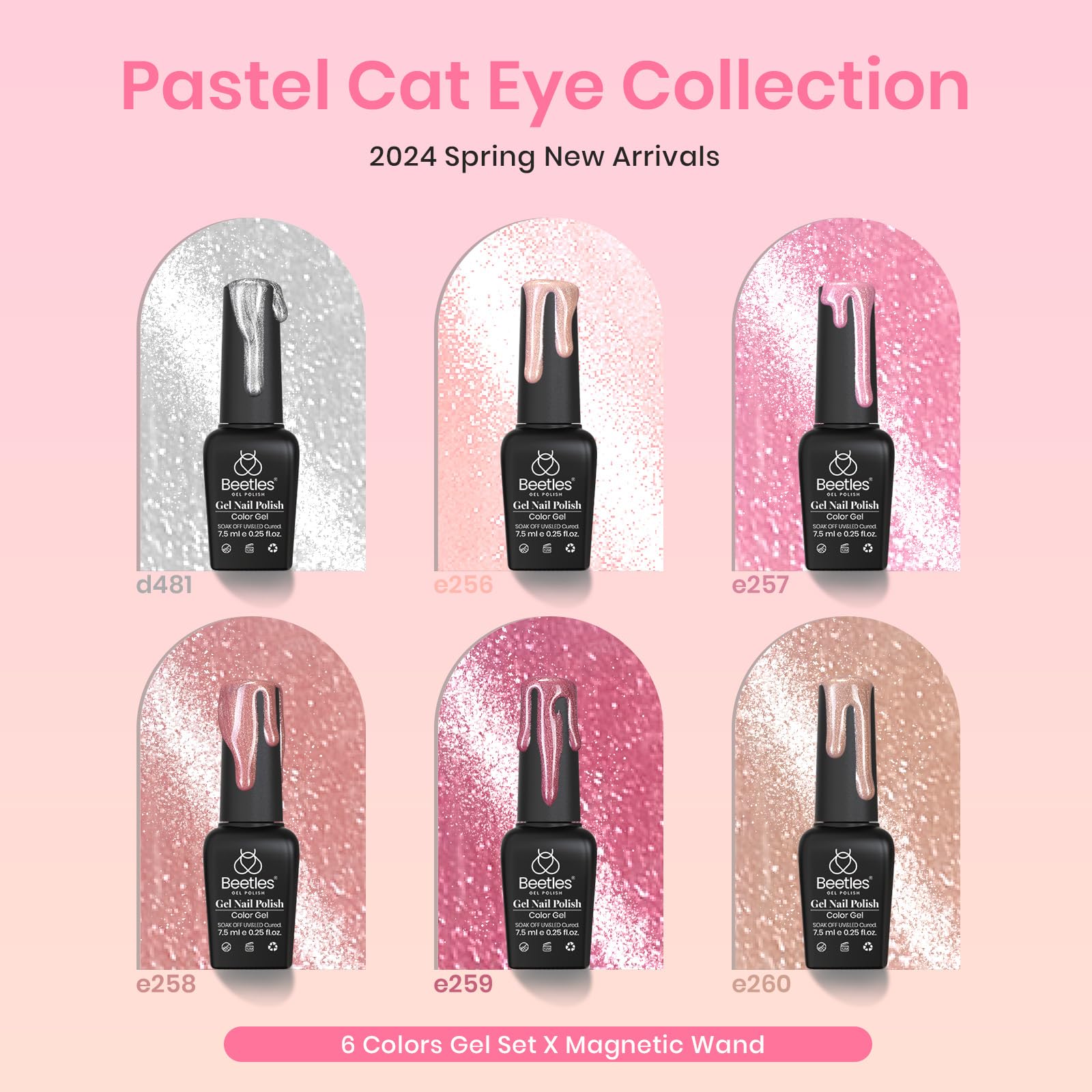- 【Fashion Cat Eye Styles】Beetles 6 colors nude pink silver cat eye gel polish kit creates a velvet nail effect for you, making your nails look clear, bright, exquisite and elegant, emitting your fashion and nail charm. The fun of cat eye nails lies in how customizable they can be, you only need a small magnet to create many effects. You could enjoy the fun of DIY Nail Art Design and manicure at Home.