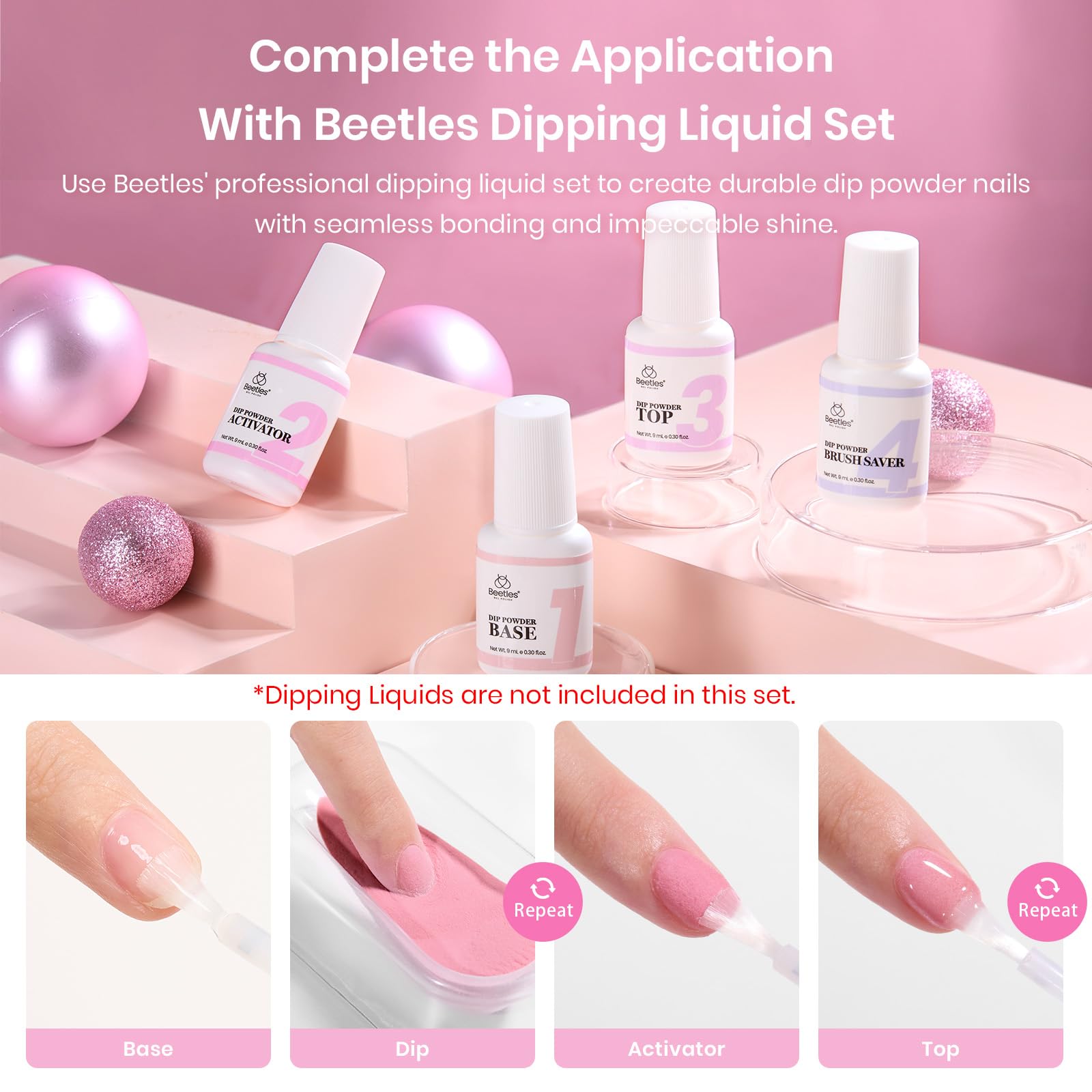 Beetles Dip Powder Nail Kit, 6 Colors Pink White Purple Powder Dipping Set Spring Colors for All Seasons, Blue Pink Glitter DIY Art Manicure No Need Nail Lamp Cured Gifts for Women