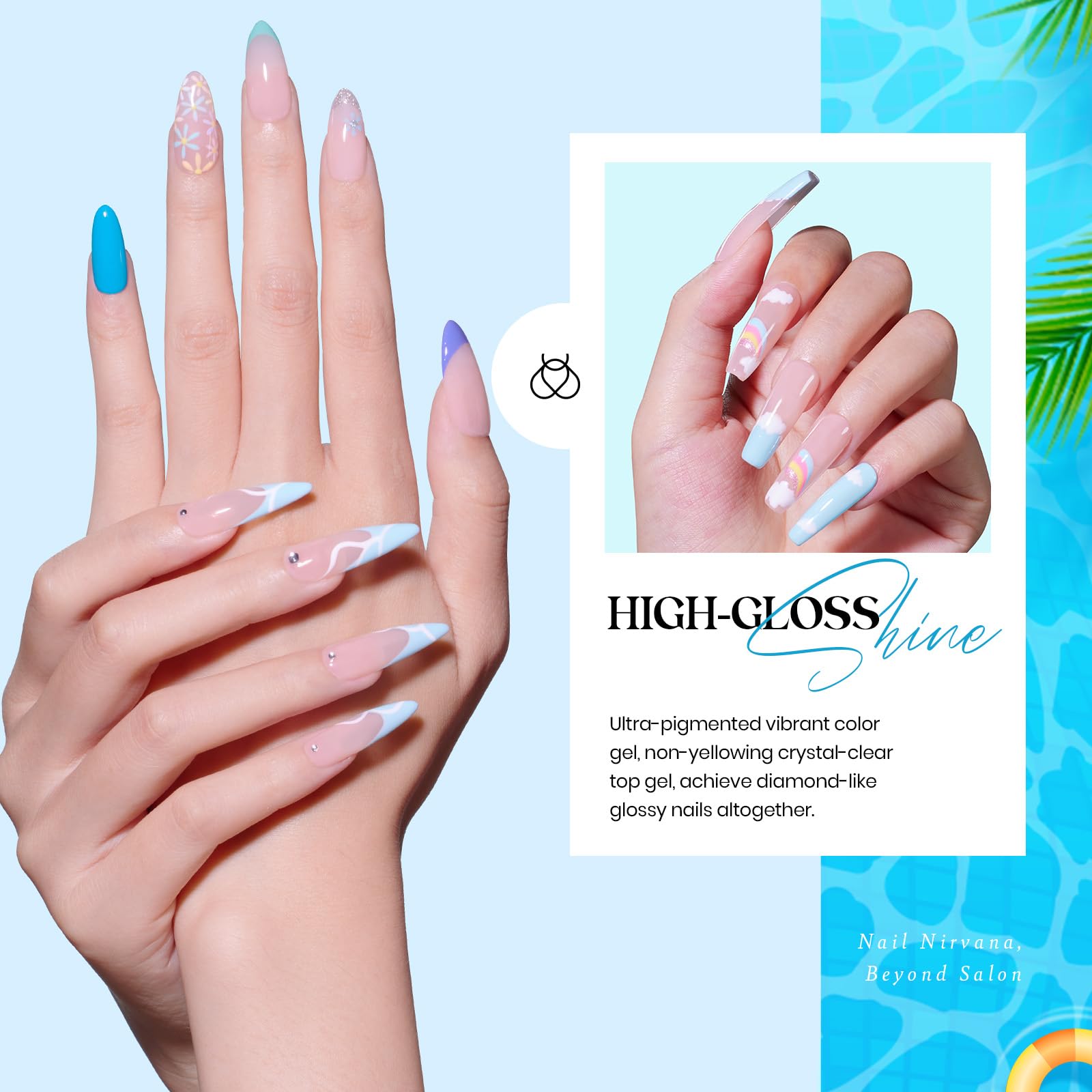 - 【Gel Nail Polish Set】: This Collection includes 20 Gel Nail Polish New colors beautiful shade of gel polish and 3pcs glossy & matte top coat and base Coat. The glossy and vibrant colors are perfect for holiday and routine life. Combining life with fashion and manicure, Surround ourselves with 20 colors that infuse positive feelings with energy and excitement.(The Color Number is b443-b462)
