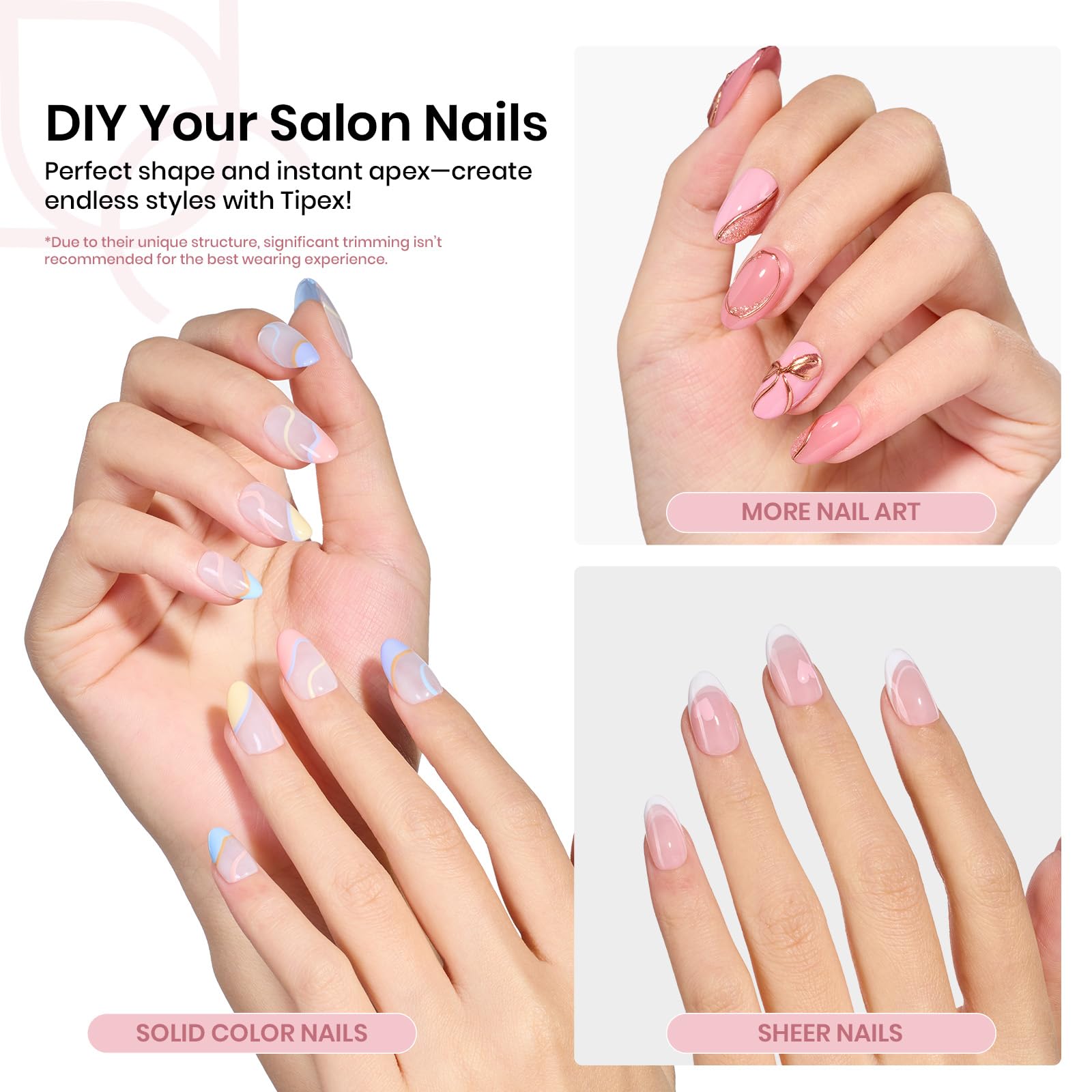 - What is Tipex? : Tipex simplifies nail extending and shaping with its ready-made shape and integrated apex, making beauty easy and providing thick & strong nails. Efficient and Cost-Effective Nail Enhancements. Warm Tips: *Due to their unique structure, significant trimming isn't recommended for the best wearing experience.