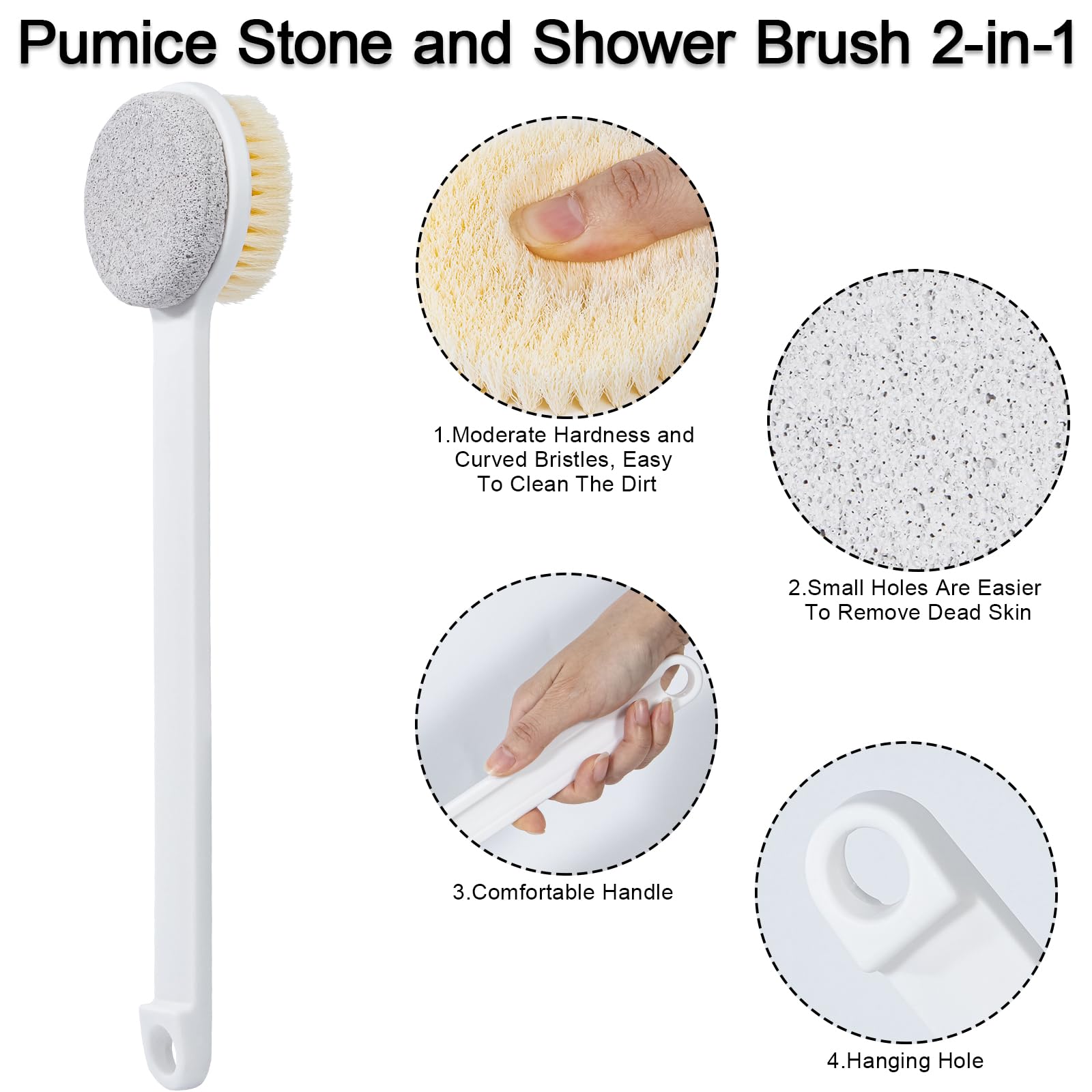 - 2-in-1 Design: This foot scrubber combines a pumice stone and shower brush for deep cleansing and exfoliation of dry, calloused skin