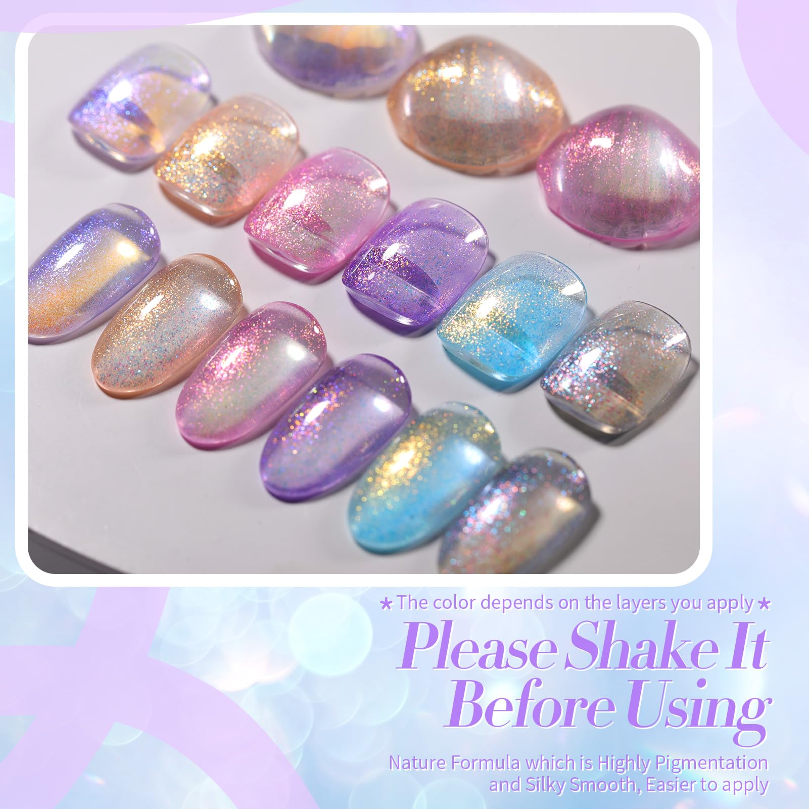 Born Pretty Pearl Gel Nail Polish Set Shell Glimmer Shimmer Mermaid Glitter Gel Polish Transparent Jelly Pearlescent Gel Polish Nail Art Manicure Varnish 6 Colors 7ml Collection Gifts