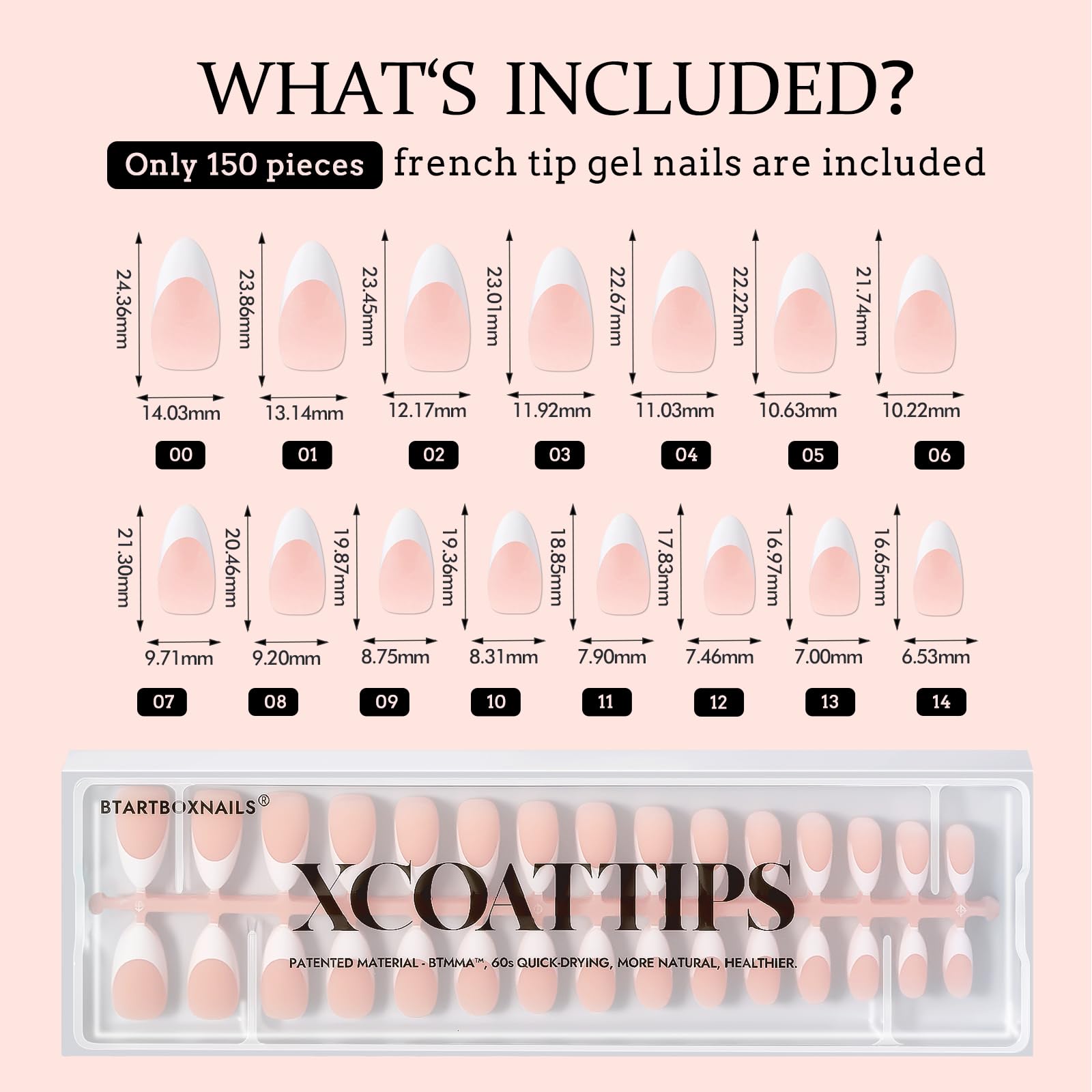 BTArtboxnails Almond French Tip Gel Nail Tips Kit - Soft Press on Nails with Nude Acrylic Tips XCOATTIPS and Supplies for Professional Use
