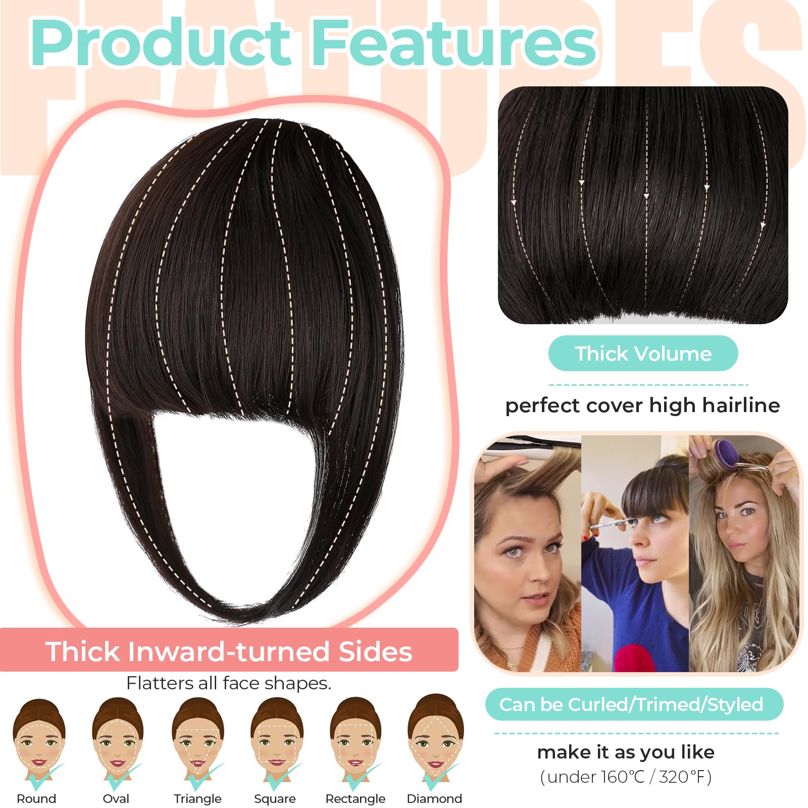 - 【Try Bangs Risk-Free】: Trying fake bangs before a new hairstyle is wise. This way, you won't regret getting a bangs that doesn't suit you. No haircuts, no awkward growing-out phase, saving time and money. Experiment with bangs and without, freely switching up your hairstyle! Our french bangs hair clip are thick enough to cover your forehead perfectly without looking sparse. Whether you're a student or a professional, you can easily embrace the trendy clip in bangs