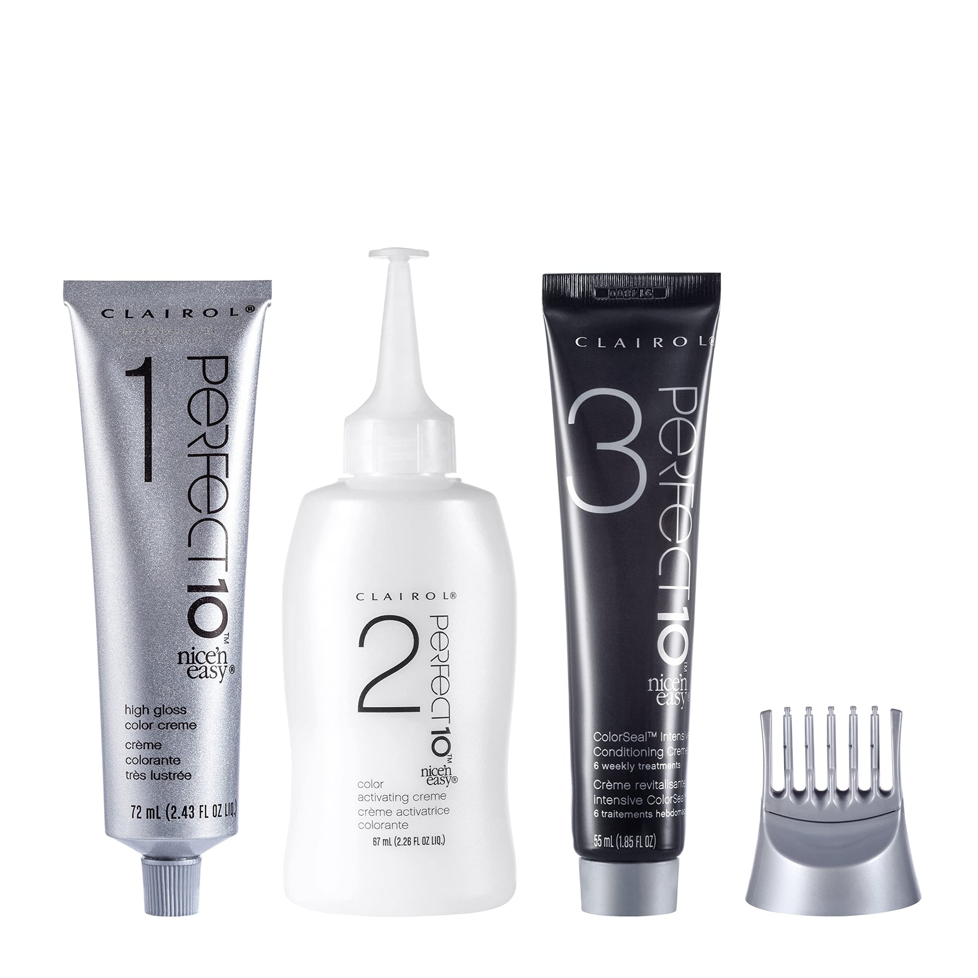 - THE PERFECT 10: The Clairol NICE'N Easy Perfect 10 Permanent Hair Dye Kit provides 100% gray coverage and stunning color