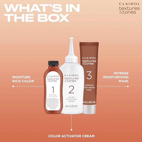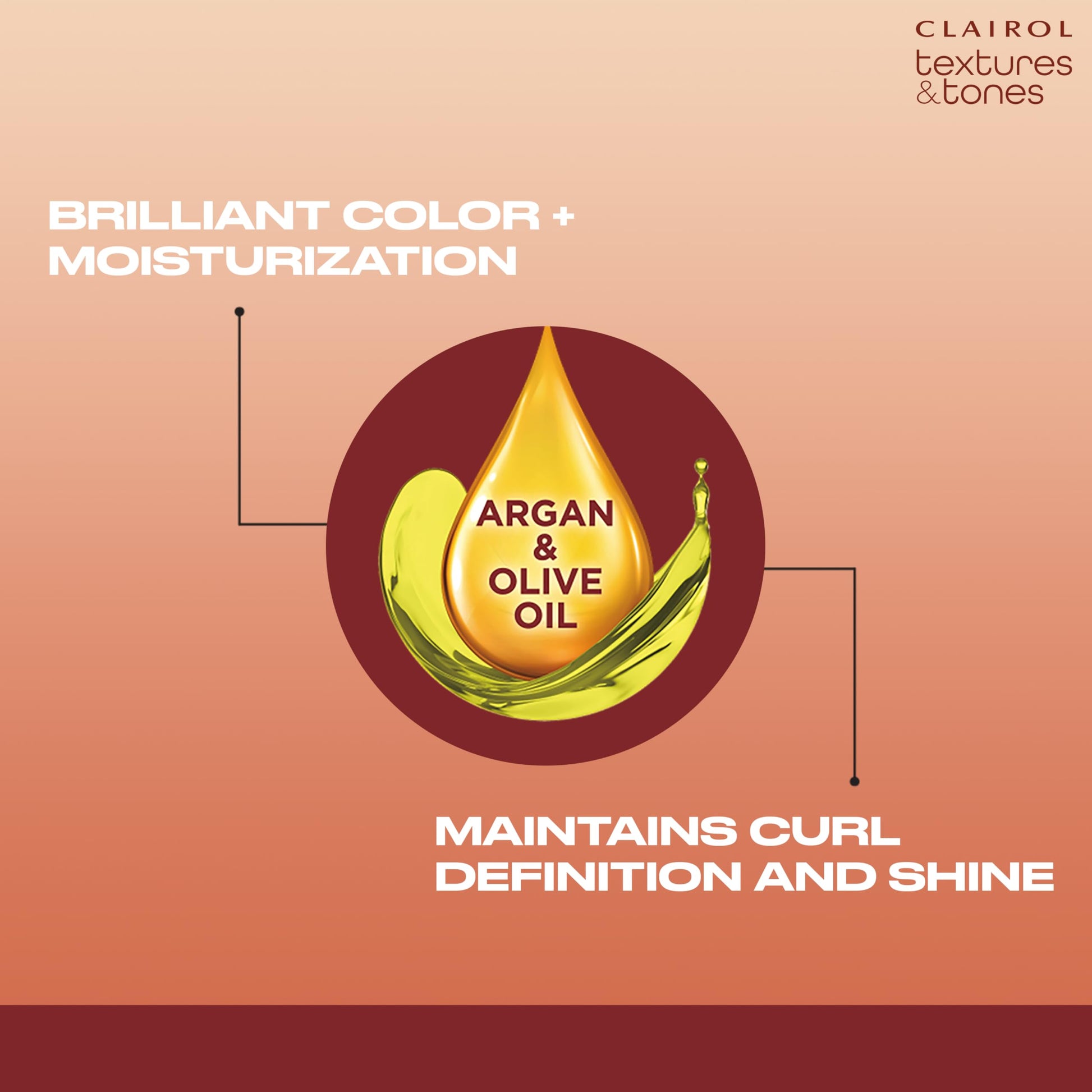Details: BRILLIANT COLOR + MOISTURIZED HAIR. With Zero Ammonia, Argan and Olive oil, Textures & Tones gives you moisture-rich color that is key for maintaining curl definition and shine. Our Intensive Moisturizing Mask helps detangle and strenghten hair, for instant softness. Designed with textured hair and color specialists to create a system optimized to pamper textured hair types- natural or relaxed.
