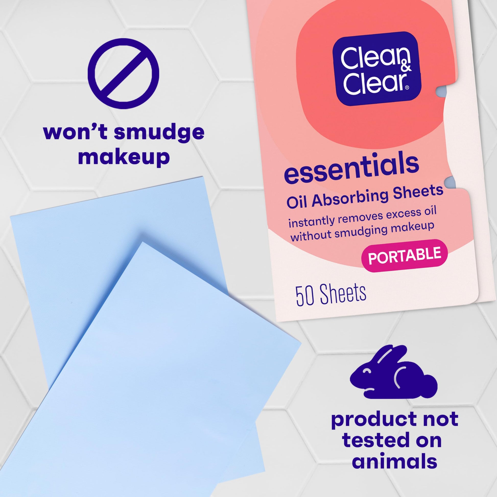 - 50-count package of Clean & Clear Essentials Oil Absorbing Facial Blotting Sheets to instantly soak up excess oil, plus, to reduce and remove shine from your face and nose