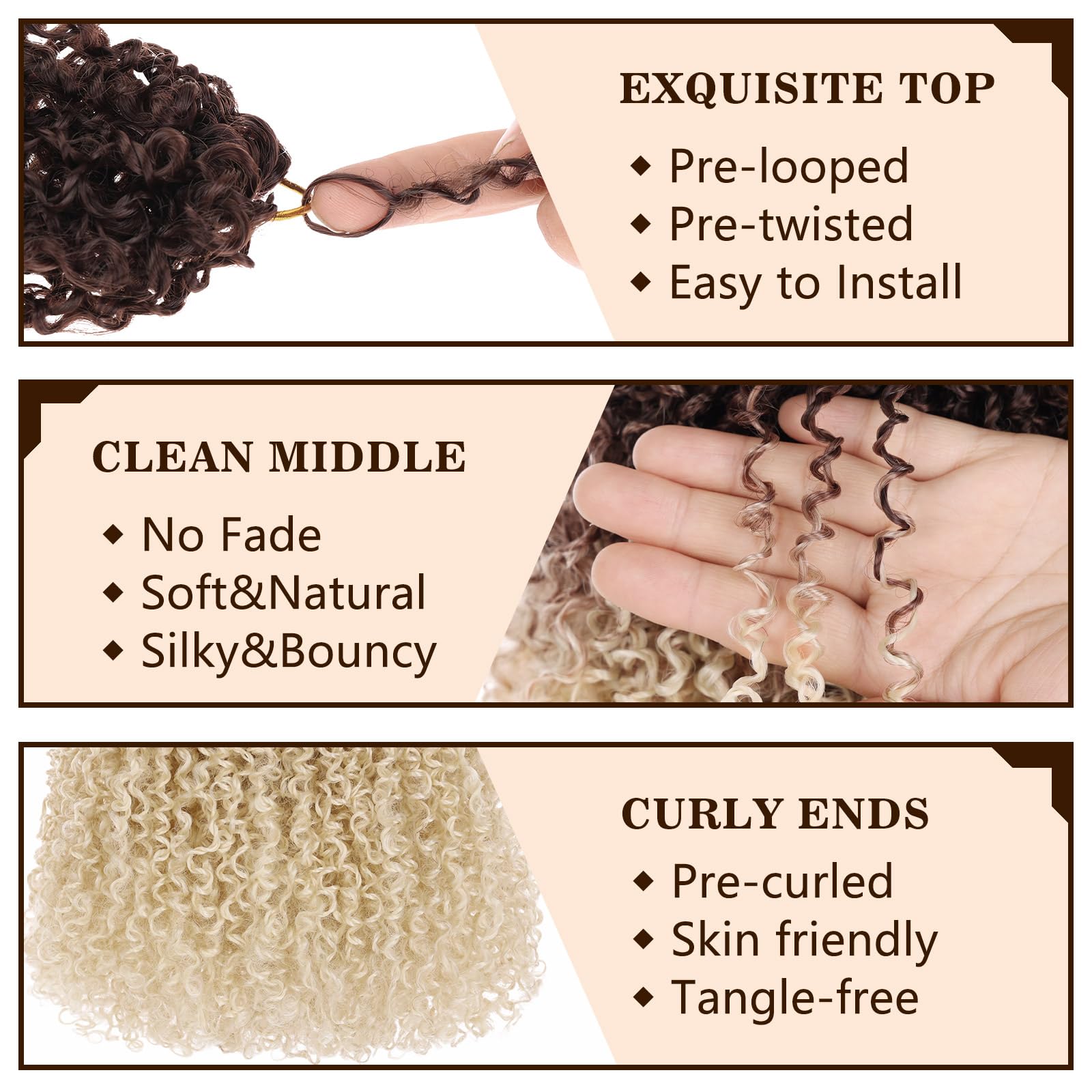 COOKOO 8 Inch Pre Looped Yanky Twist Crochet Hair 8 Packs Short Yanky Passion Twist Hair Bohemian Yanky Twists Crochet Hair Fluffy Mini Twist Crochet Hair Pre-twisted Curly Crochet Braiding Hair