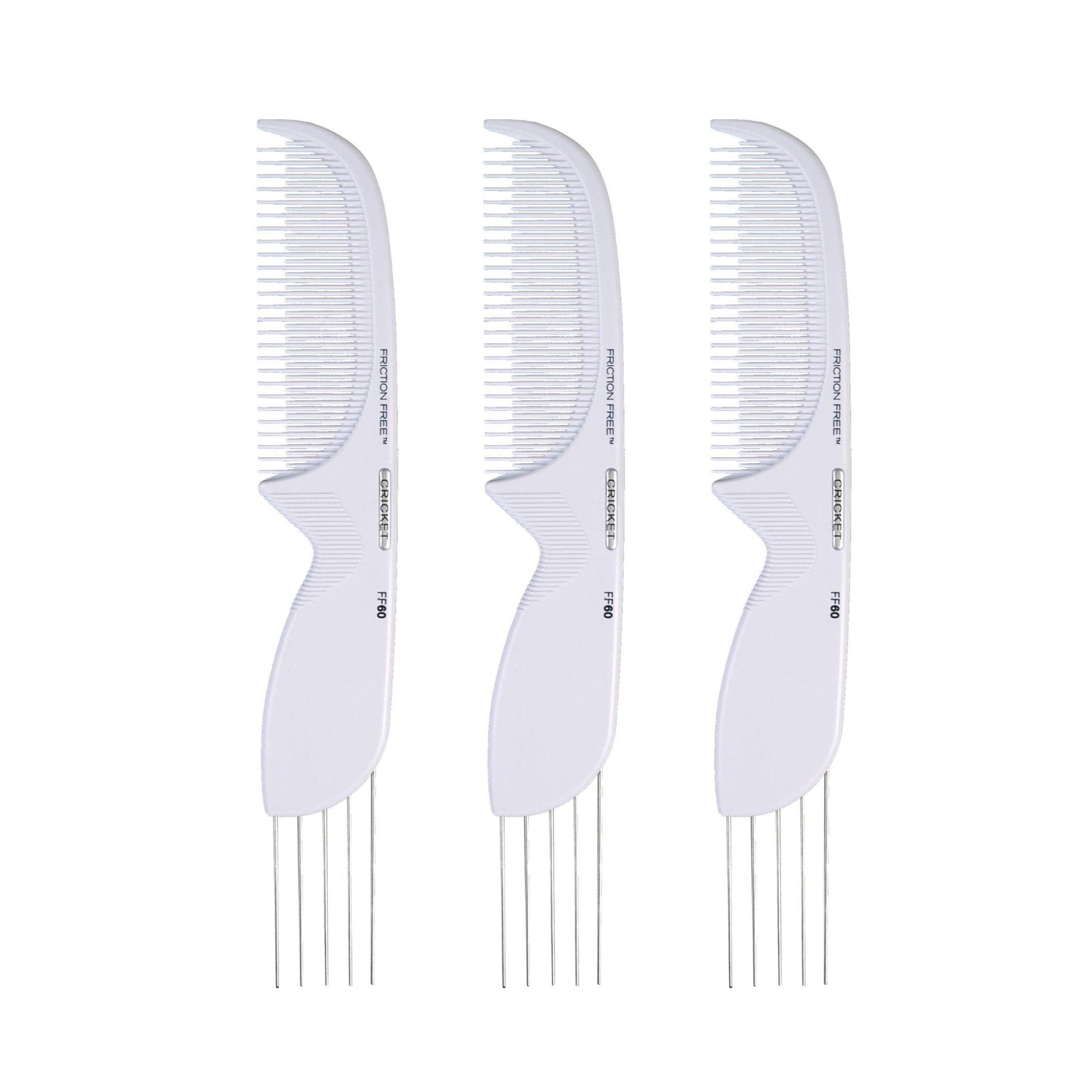 Cricket FF60 Friction Free Lift and Tease Comb - Teasing Lifting Comb with Metal Teeth for Volume and Texture, Reduces Friction and Damage, Set of 3, Ideal for Teasing and Styling All Hair Types