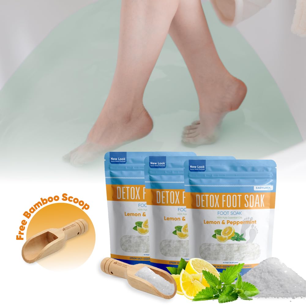 Detox Foot Soak (3 Pack Plus Scoop) Epsom Salt Soothing Soaks and Athlete's Foot Detox with Essential Oils in BPA Free Pouch with Press Lock Seal (Bundle with Three 2 Lbs Pouches 6 Lbs Total)