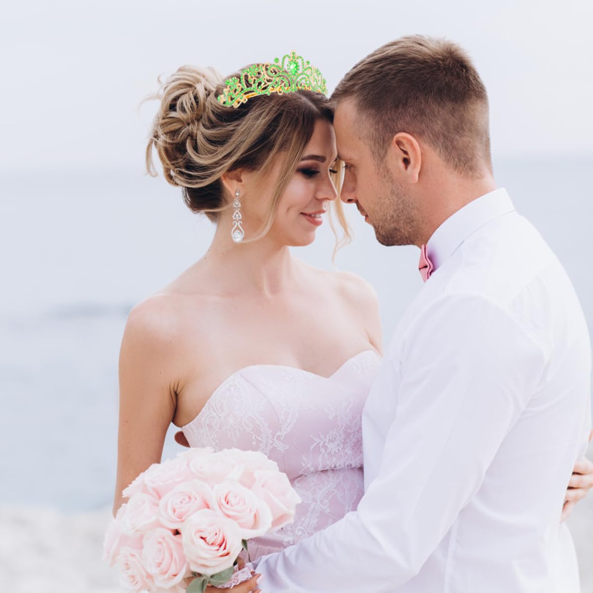 - Princess Tiara: Golden metal crown paved with green rhinestones, sweet and elegant for women and girls.