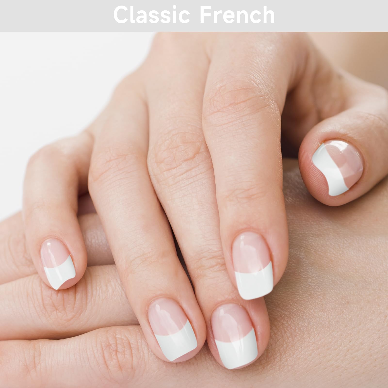 DUKASOU Semi Cured Gel Nail Strips, Classic French | 28 pc Salon Quality UV Gel Nail Stickers, Easy to Apply Home DIY