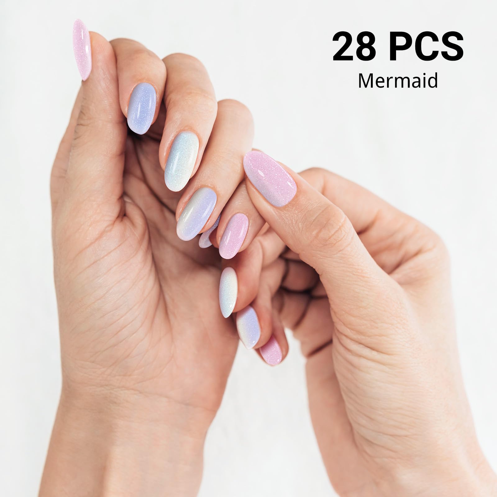 DUKASOU Semi Cured Gel Nail Strips, Mermaid | 28 pcs Gel Nail Strips Work with Any UV Lamp, Salon Quality UV Gel Nail Stickers, Easy to Apply for Home Nails DIY