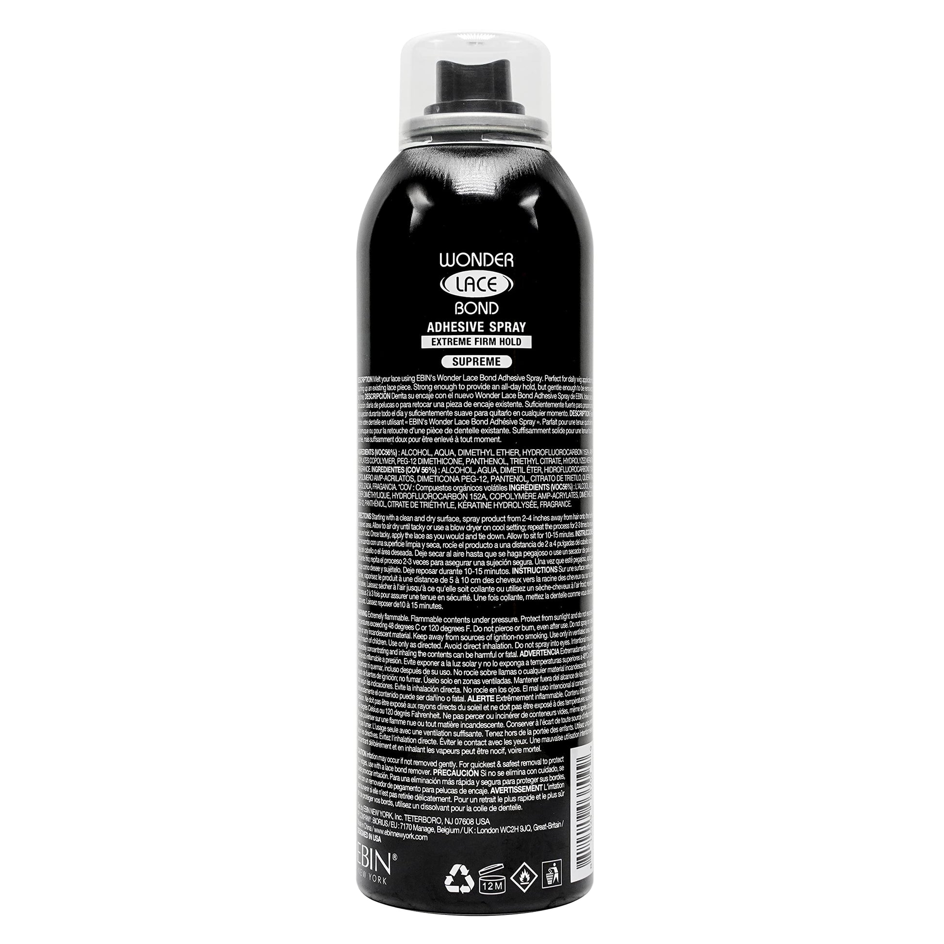 EBIN NEW YORK Wonder Lace Bond Adhesive Spray Supreme - Extreme Firm Hold 6.08oz/ 180mL | Supreme Use, Fast Drying, No Residue, No Build-up, Powerful Hold, All-Day Hold, Easy Daily Wig Install