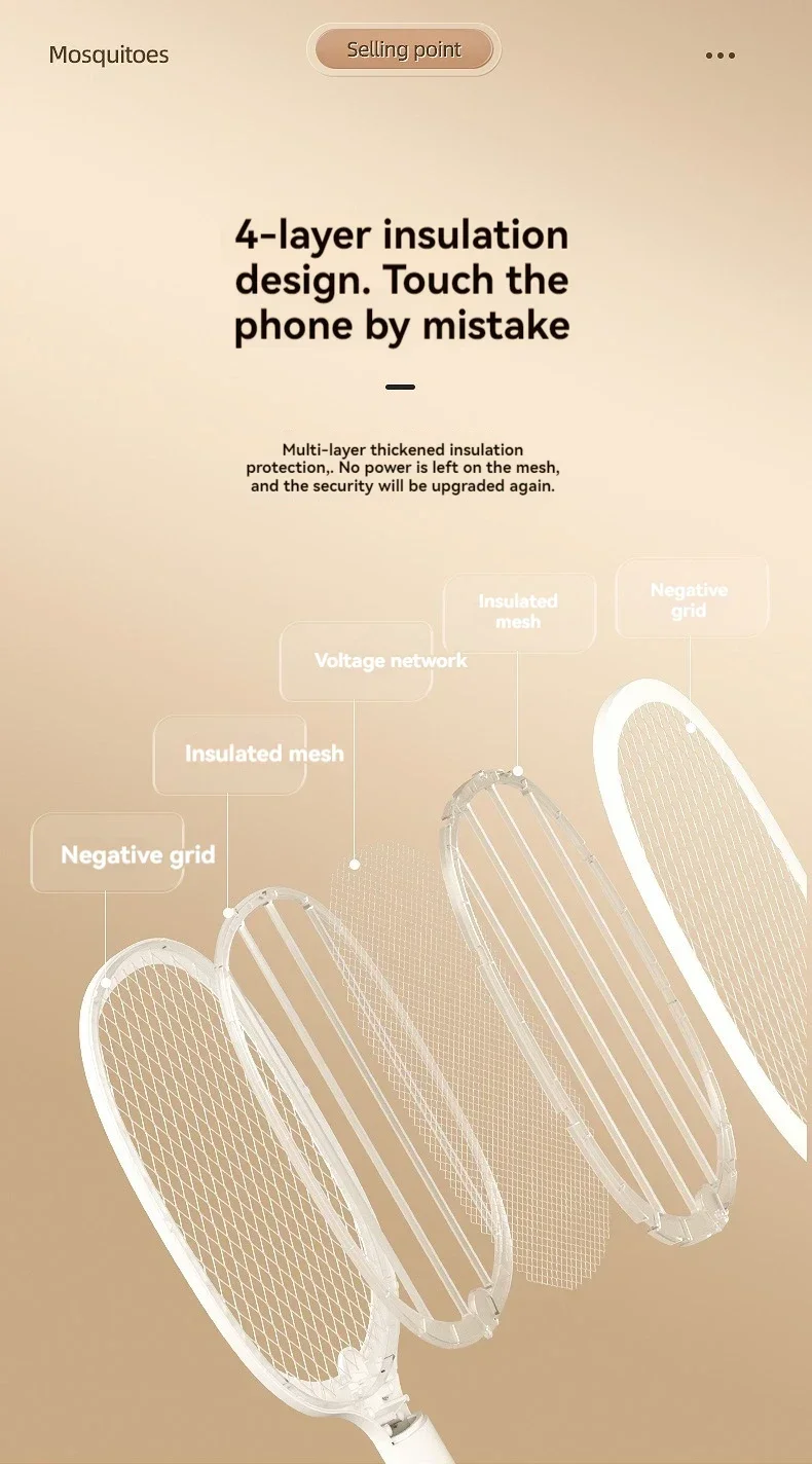 - 【SAFE TO USE】To ensure the safety of use, the electric pest exterminator is equipped with a three-layer safety net, which can avoid the danger of direct contact with the high-voltage grid. Comes with nickel-plated stainless steel outer net and aluminium inner net, will not leak or deform. Friendly to children and the environment.