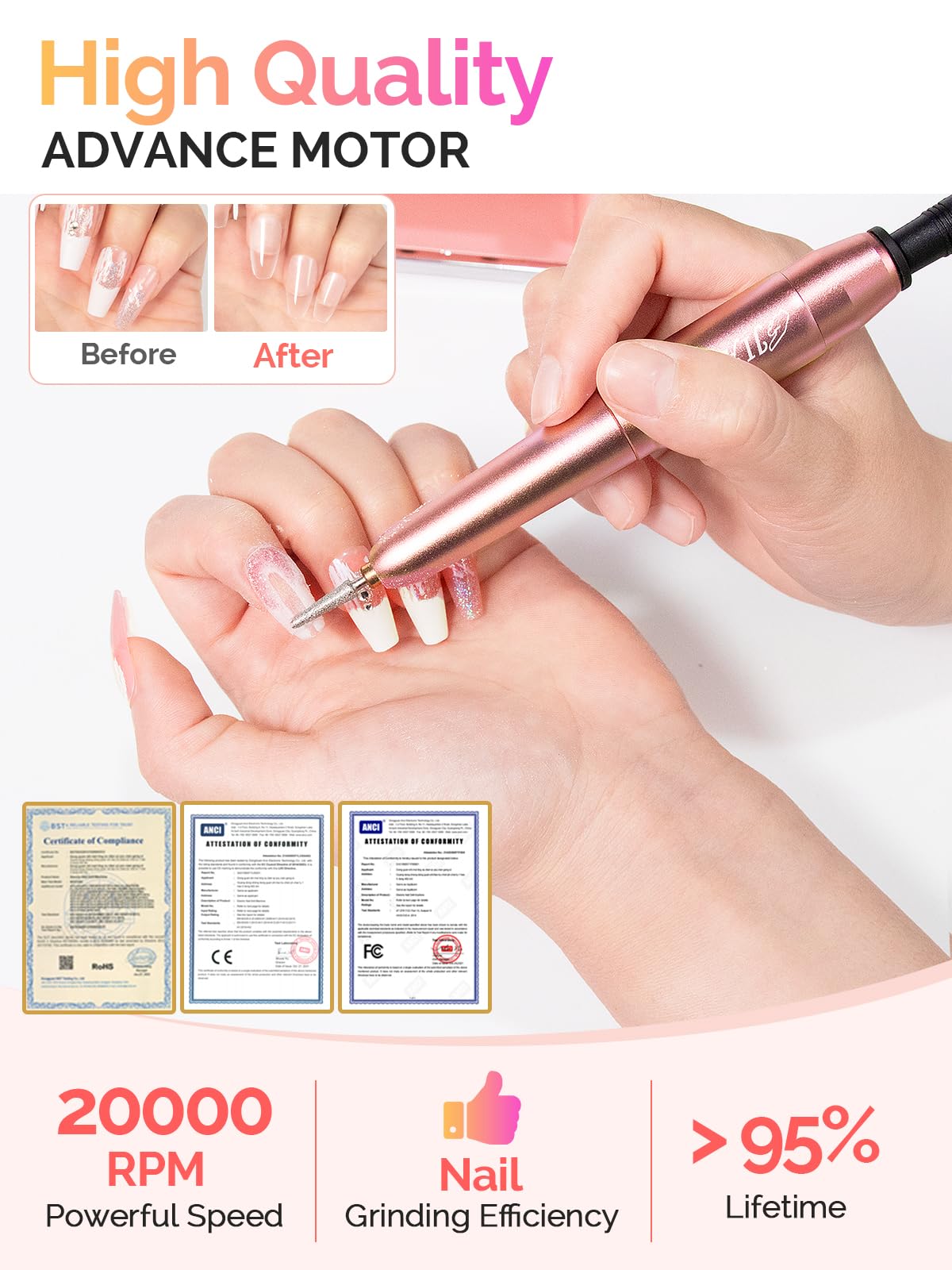 - Multifunctional Nail Drill Kit: Just a nail file drill meets all your needs, multifunctional use for nails prep, acrylic nails, gel nails, dip powder nails, thick nails, nail grinder, manicure & pedicure, callus removal, natural nails, routing, nail machine for acrylic nails, polishing, etc. Our nail drill professional ensures efficient and precise nail care for gel nails is the perfect choice for you