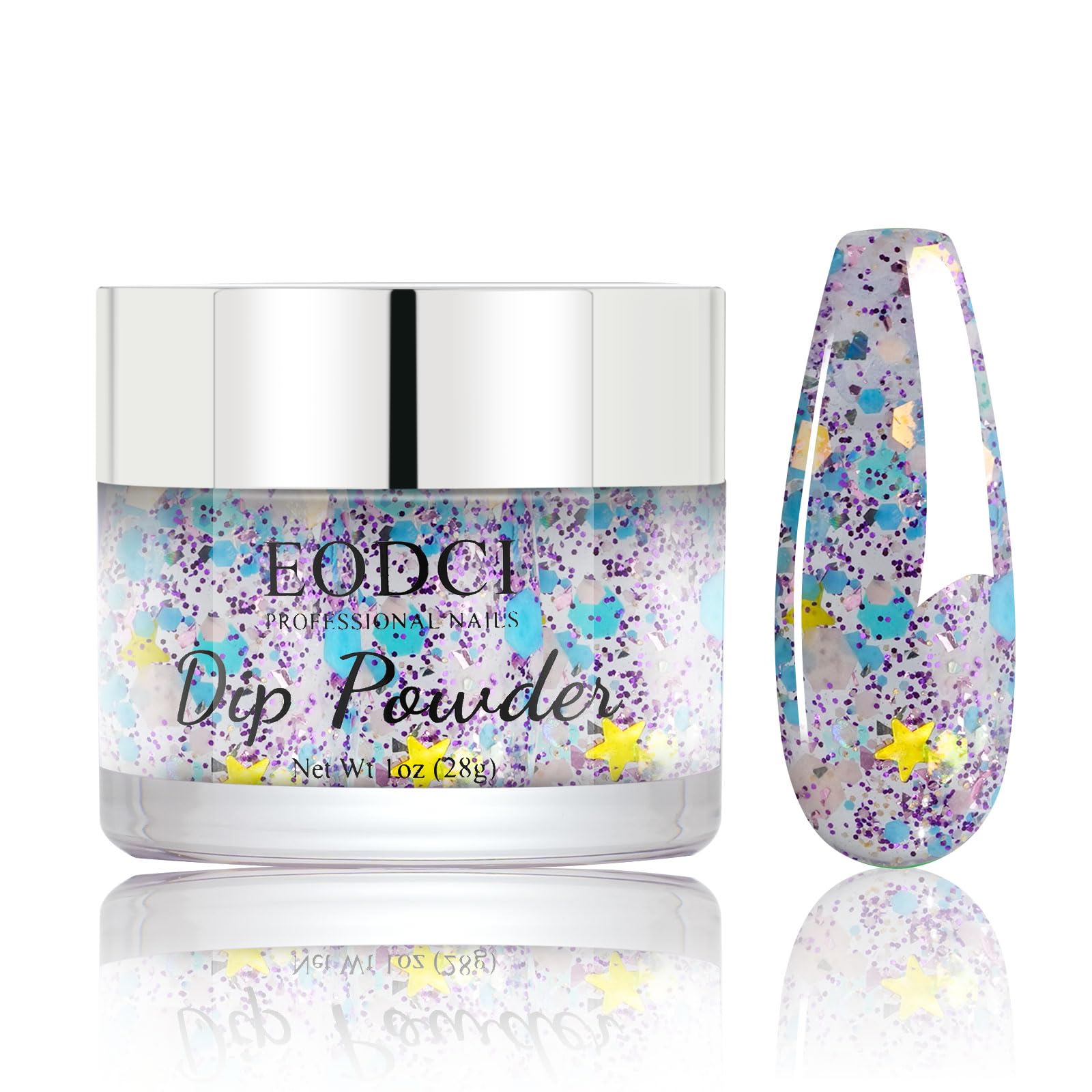 EODCI Long Lasting Nail Dip Powder Colors, Lavender Purple Blue Glitter Dipping Powder - No Needed Led Lamp - Art Starter Manicure Beginner DIY Salon Home Gift 1oz