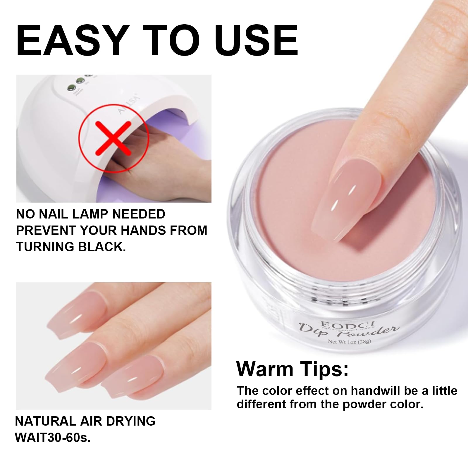 - 【Large Capacity & High Quality】EODCI Dipping Powder has a 1 oz. capacity to meet your daily manicure needs.ODOR-FREE, More Durable, resistant to chipping and cracking, breathable, water resistant.